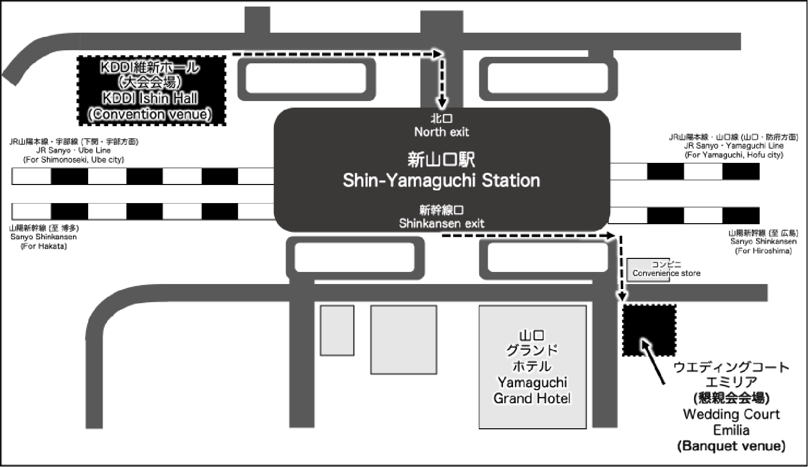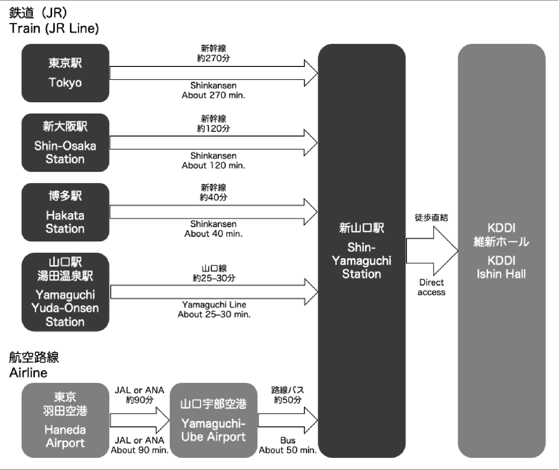 KDDI Ishin Hall is a 3-minute walk from the north exit of Shin-Yamaguchi Station.