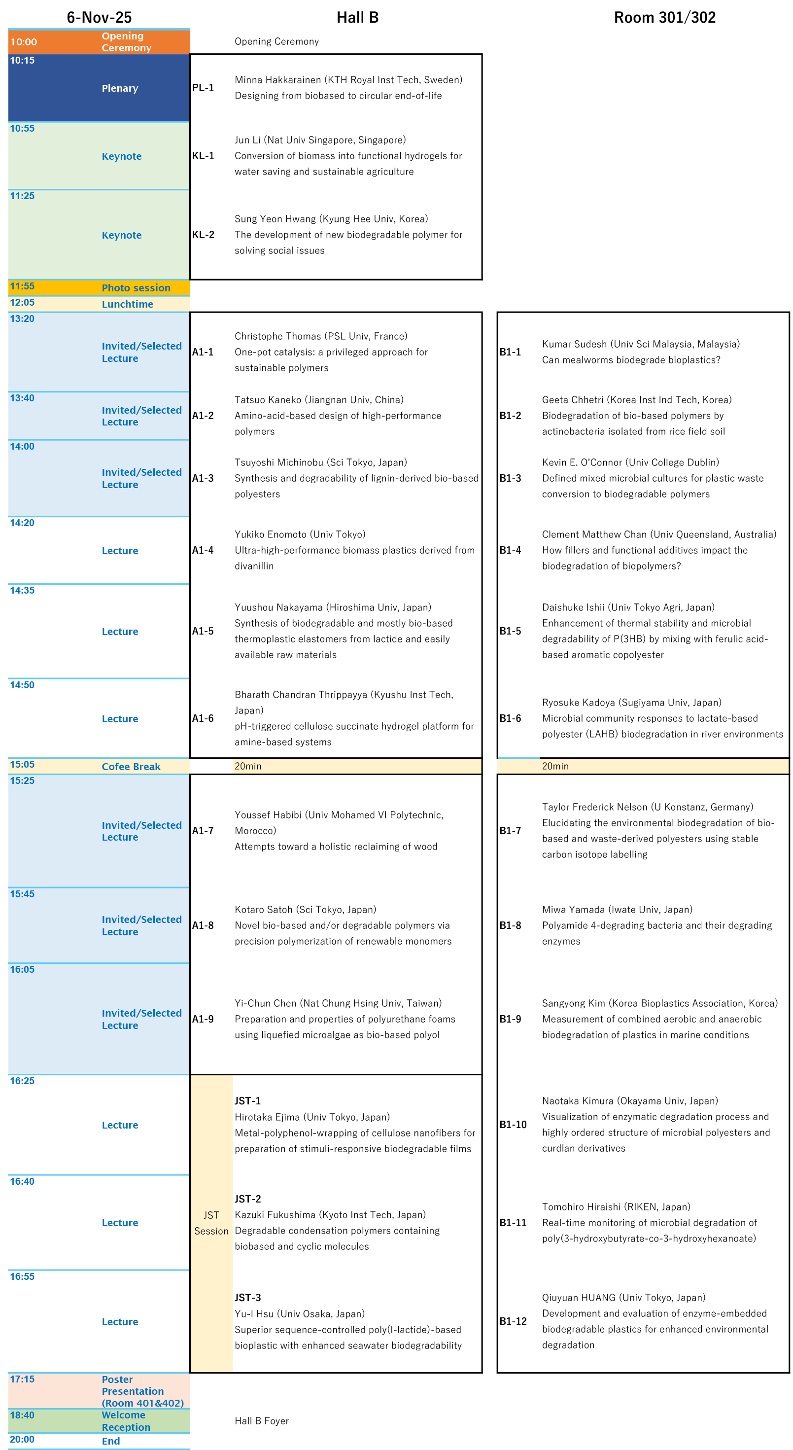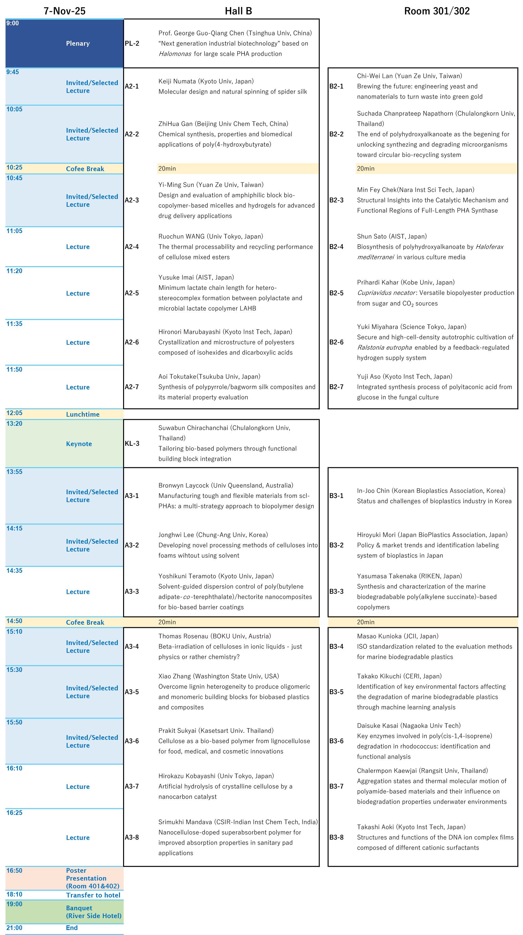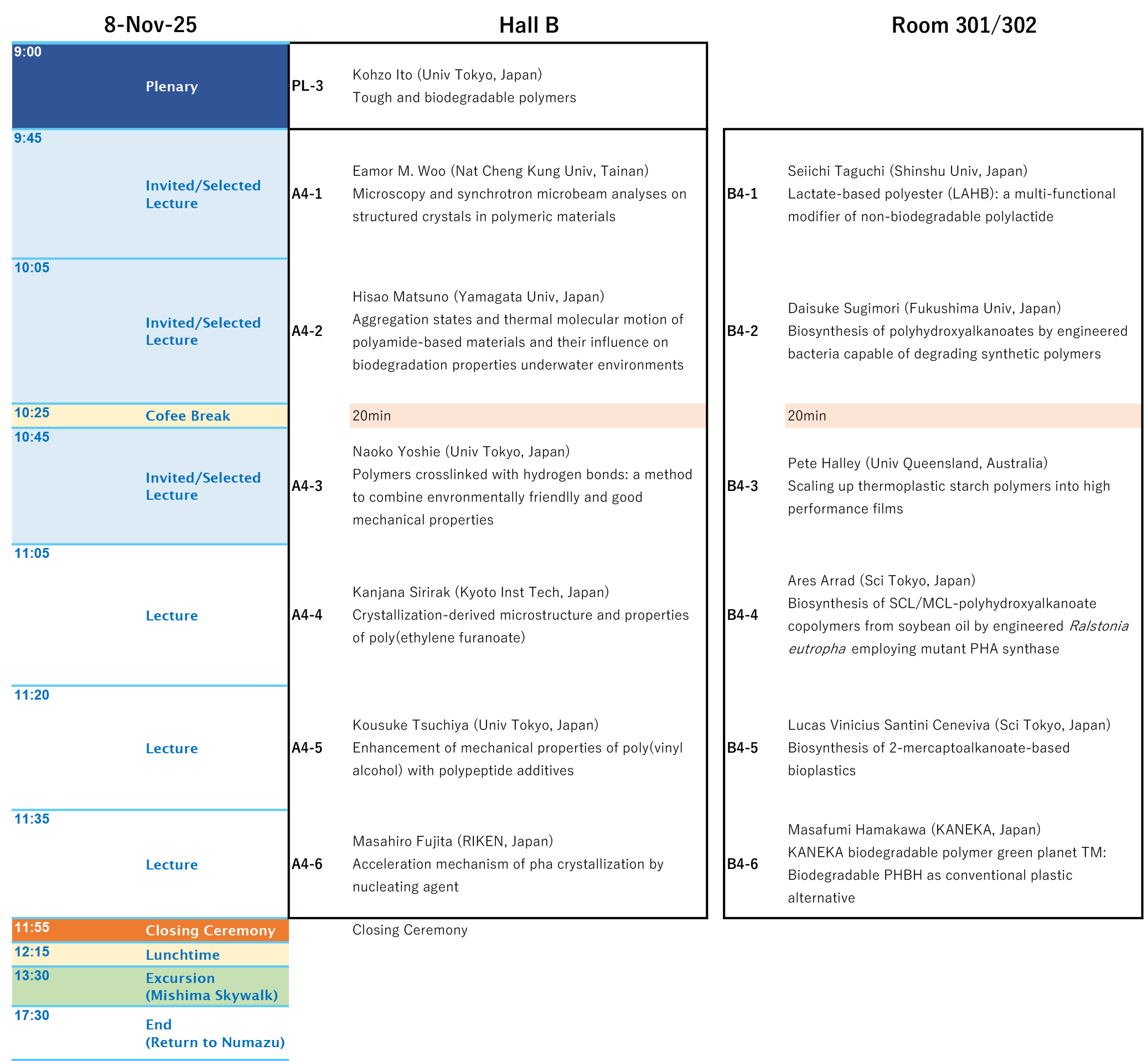 • Plenary lecture 40 min (Presentation 35 min, Q&A 4 min, Replacement 1 min)