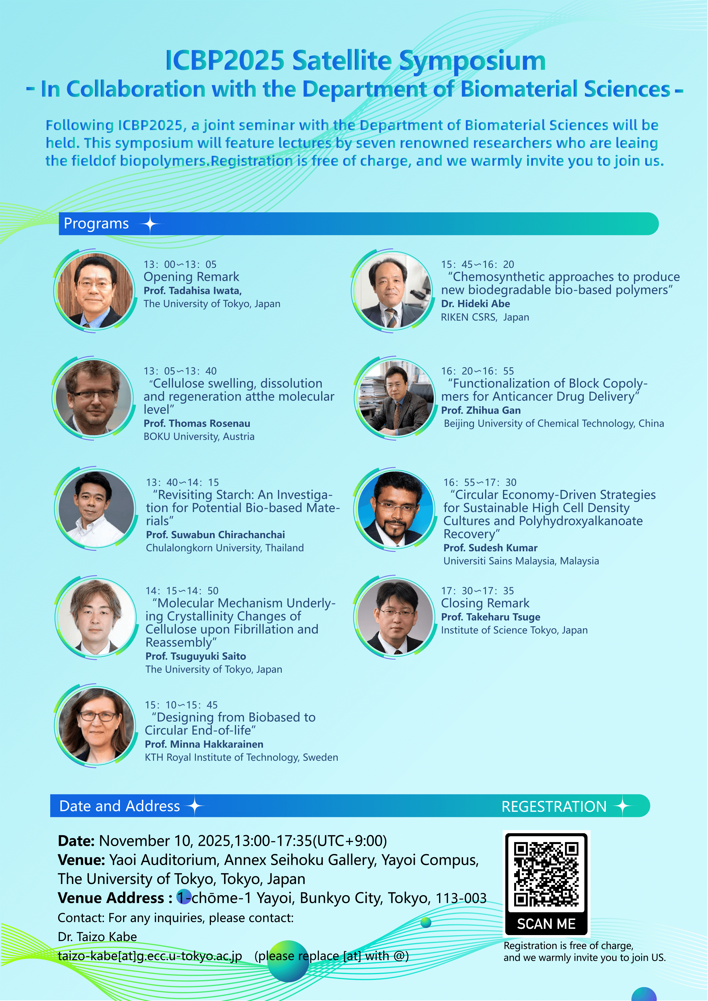 As part of ICBP2025, a Satellite Symposium will be held in collaboration with the Department of Biomaterial Sciences at the University of Tokyo.