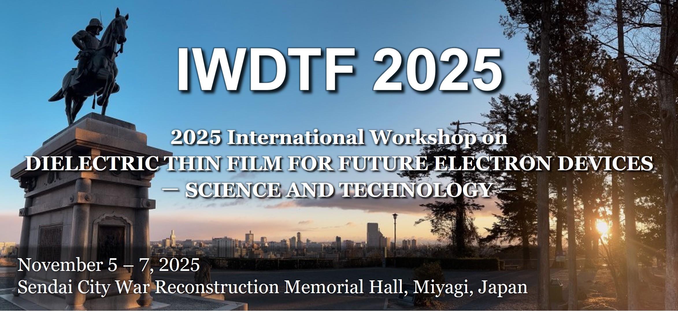 The 2025 International Workshop on “Dielectric Thin Films for Future Electron Devices: Science and Technology” (IWDTF2025) will be held at the Sendai City War Reconstruction Memorial Hall in Sendai, Japan, from November 5th to 7th, 2025. The IWDTF started in 1999, based on a domestic annual workshop on ultrathin silicon dioxide films. The IWDTF2025 is the twelfth workshop, which will focus on the science and technologies of dielectric films for electron devices, such as ultrathin dielectrics, high-k dielectrics, and ferroelectrics. In addition to the papers on materials and processes of dielectrics for conventional logic devices, the papers for various electron devices including memory, power, analog, sensor, and display devices are welcomed. The IWDTF will provide a great opportunity for information exchange and discussion at the forefront of the research on future electron devices. The papers on both experimental and theoretical studies, for a deep understanding of the properties of dielectric films and their interfaces, are welcomed. The workshop will consist of invited and contributed talks. Selected topics of current interests will be reviewed by several invited talks.