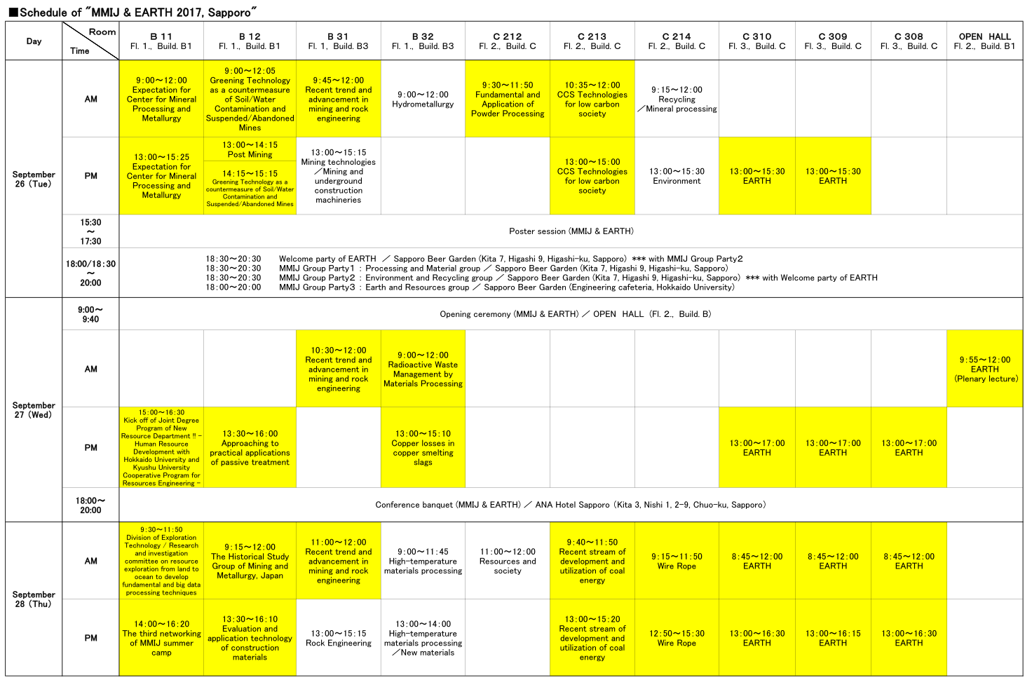 18:00 - 20:00 (MMIJ) Earth and Resources Group Party [Engineering cafeteria in Fac. Eng., HU]