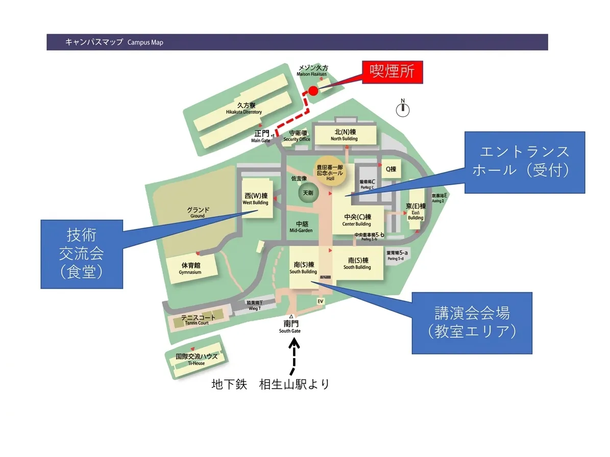 構内・屋外を含めキャンパス内は、全面禁煙です。