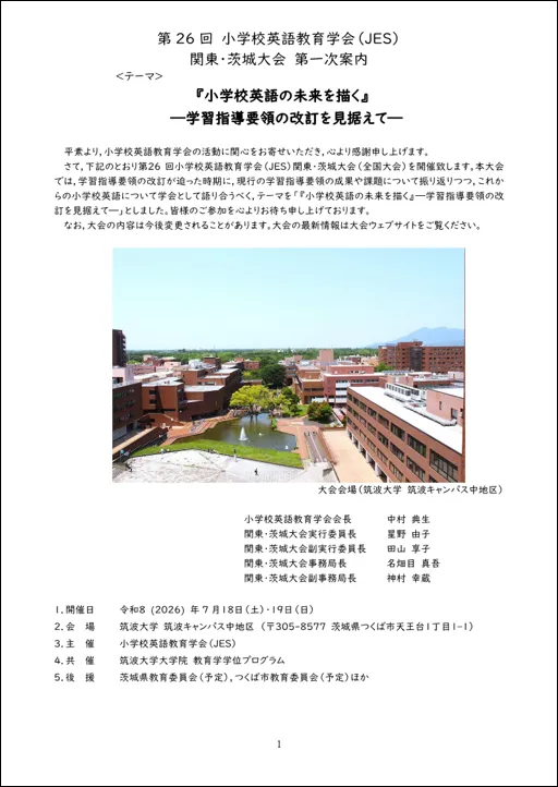 第26回小学校英語教育学会(JES)関東・茨城大会(全国大会)