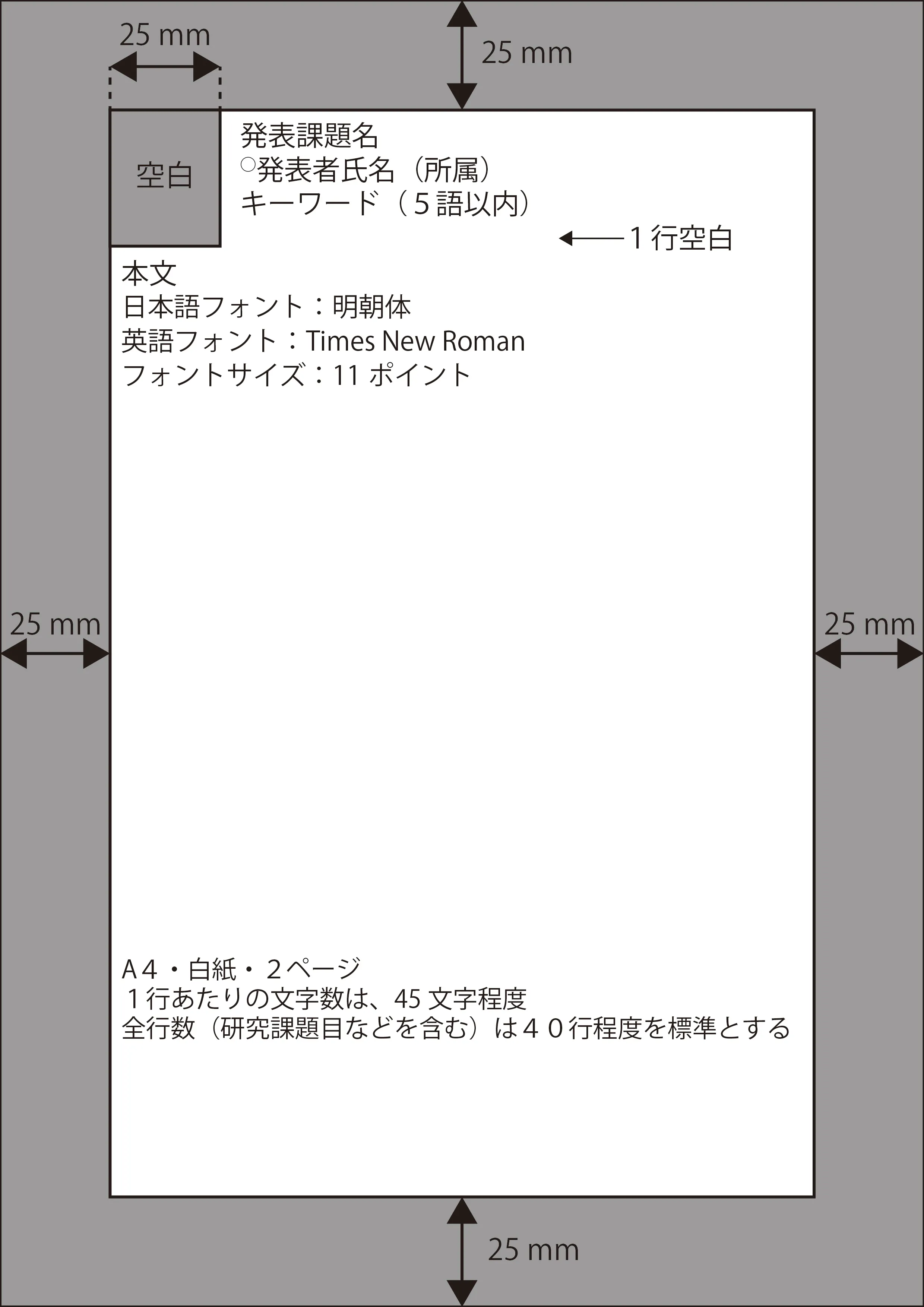 - 講演要旨の上下左右の余白は、25mmとします。