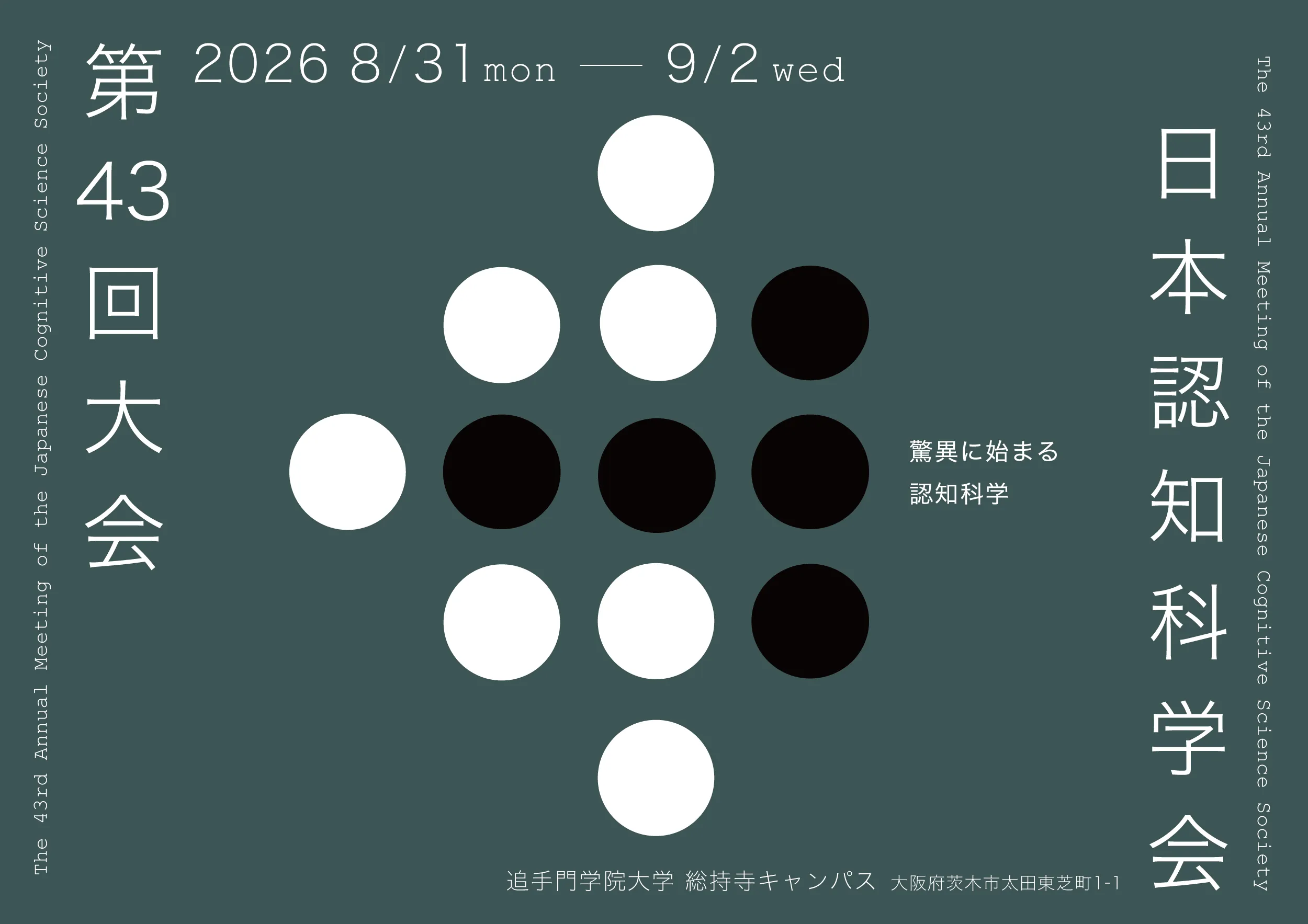 | 本大会コンセプト「驚異に始まる 認知科学」を受けて、片岡美沙さん(追手門学院大学社会学部4年生・2025年度当時)が大会ポスターを制作しました。 誰もが一度は遊んだことのあるこのゲーム。子どもの頃にルールを知り、考え、人と対話してきたはずです。その一つひとつの過程に、ささやかな「驚異」の感覚が潜んでいたのではないでしょうか。「驚異に始まる」営みは研究にも通じます。その「驚異」を起点として、本大会を楽しんでいただけると幸いです。 |