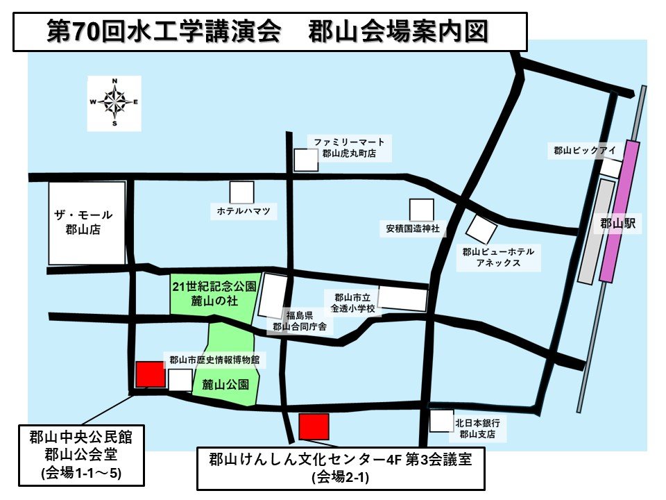 ※郡山駅より徒歩20分,バス6分(郡山バス停11番より約20分に1本程度の間隔で発車しています.)