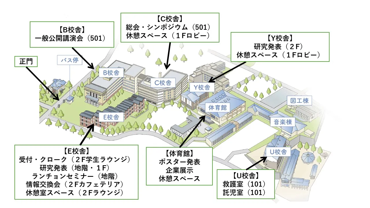 | ランチョンセミナー | E校舎(E001 ~005、E101、E102) |