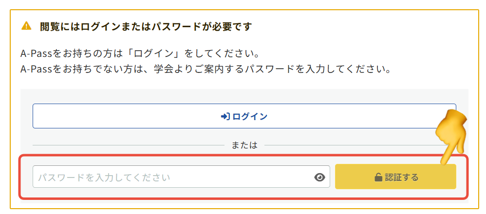 学会よりご案内するパスワードを入力し「認証する」をクリックしてください。