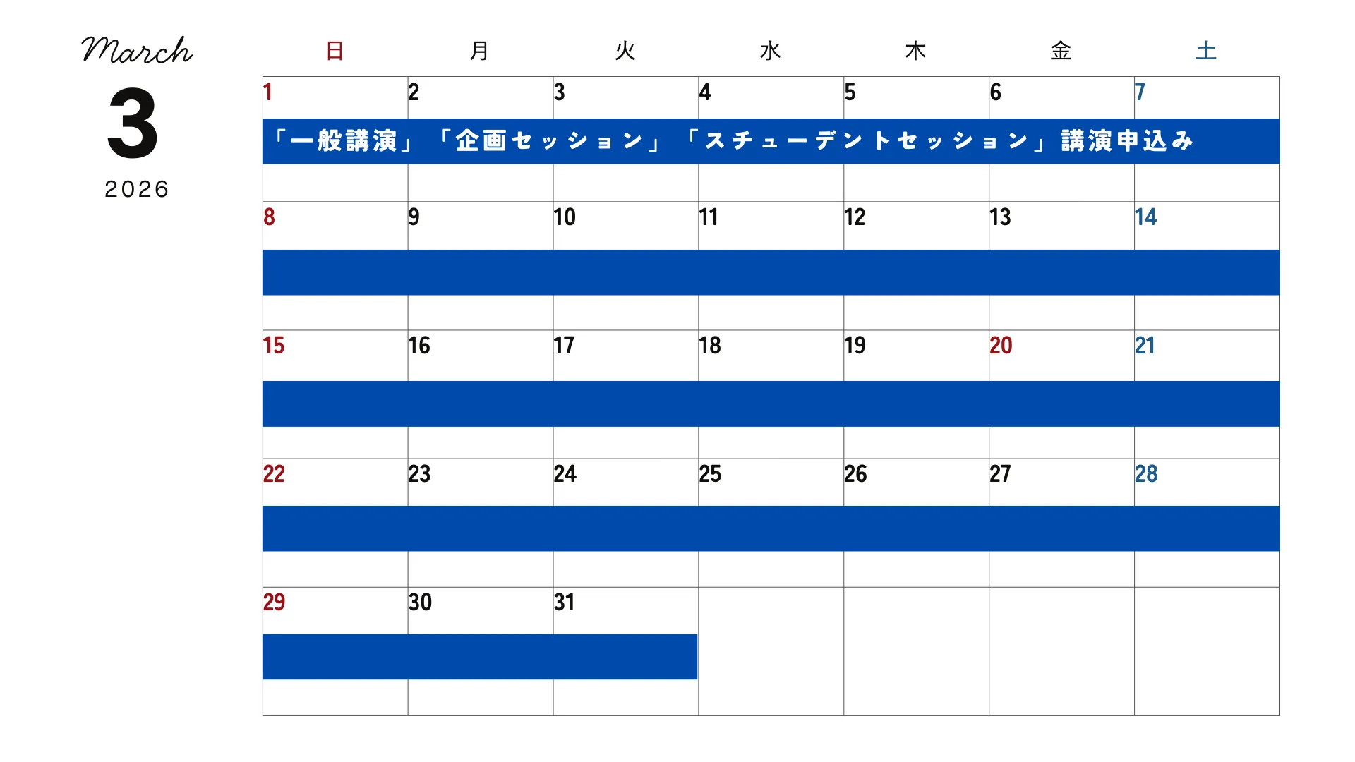 「スチューデントセッション」講演申込み(3/1~4/5)