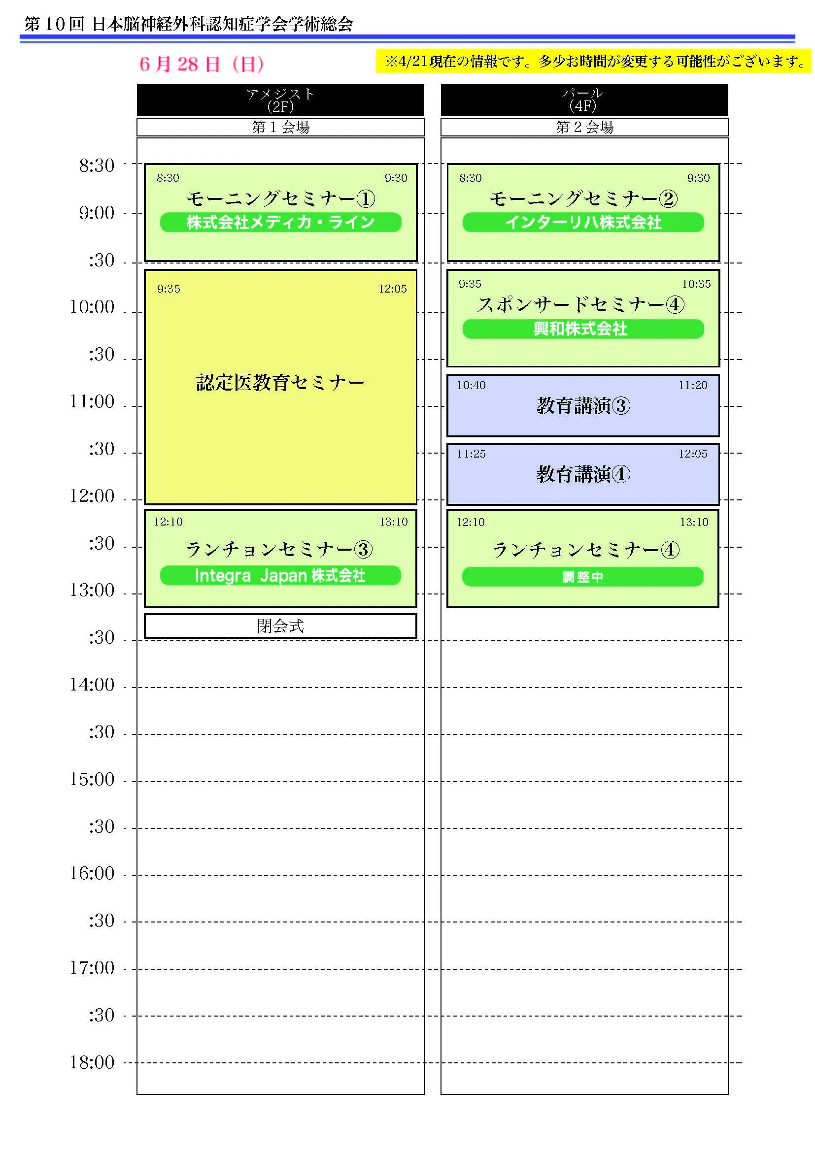 4/23(木)現在の日程表を掲載しております。まだ多少お時間が前後する可能性がございますので、ご了承ください。