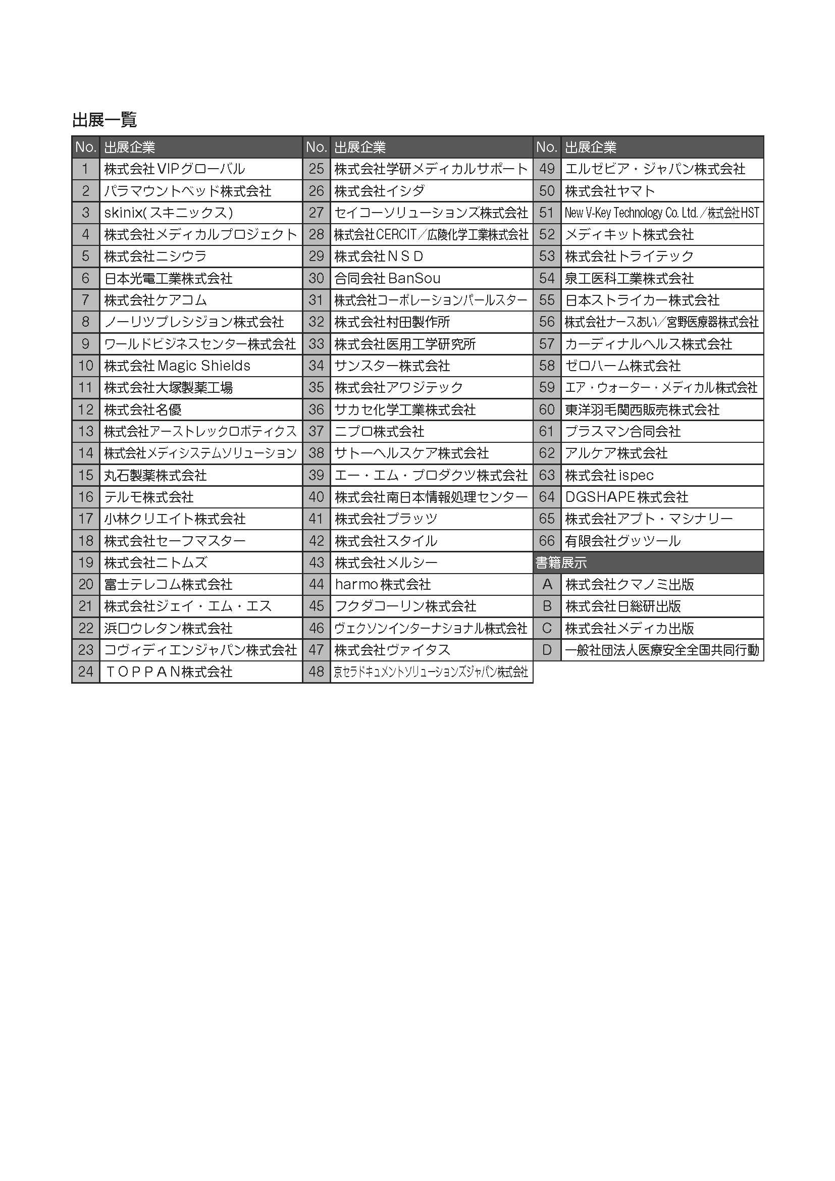 出展者一覧