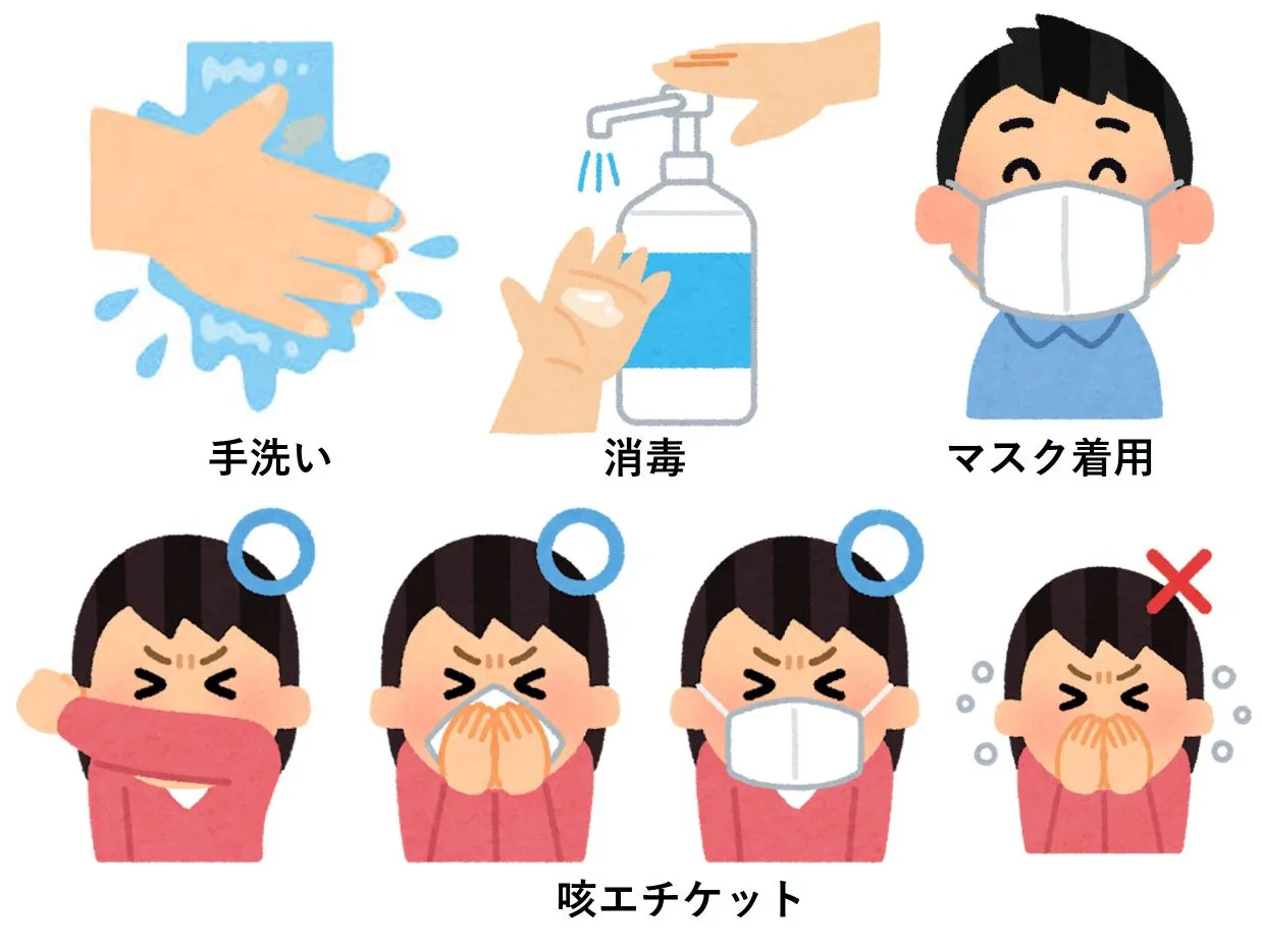 手洗いや消毒をこまめに行う,マスクを着用する,咳エチケットの実践などの感染症対策へのご協力を願します。