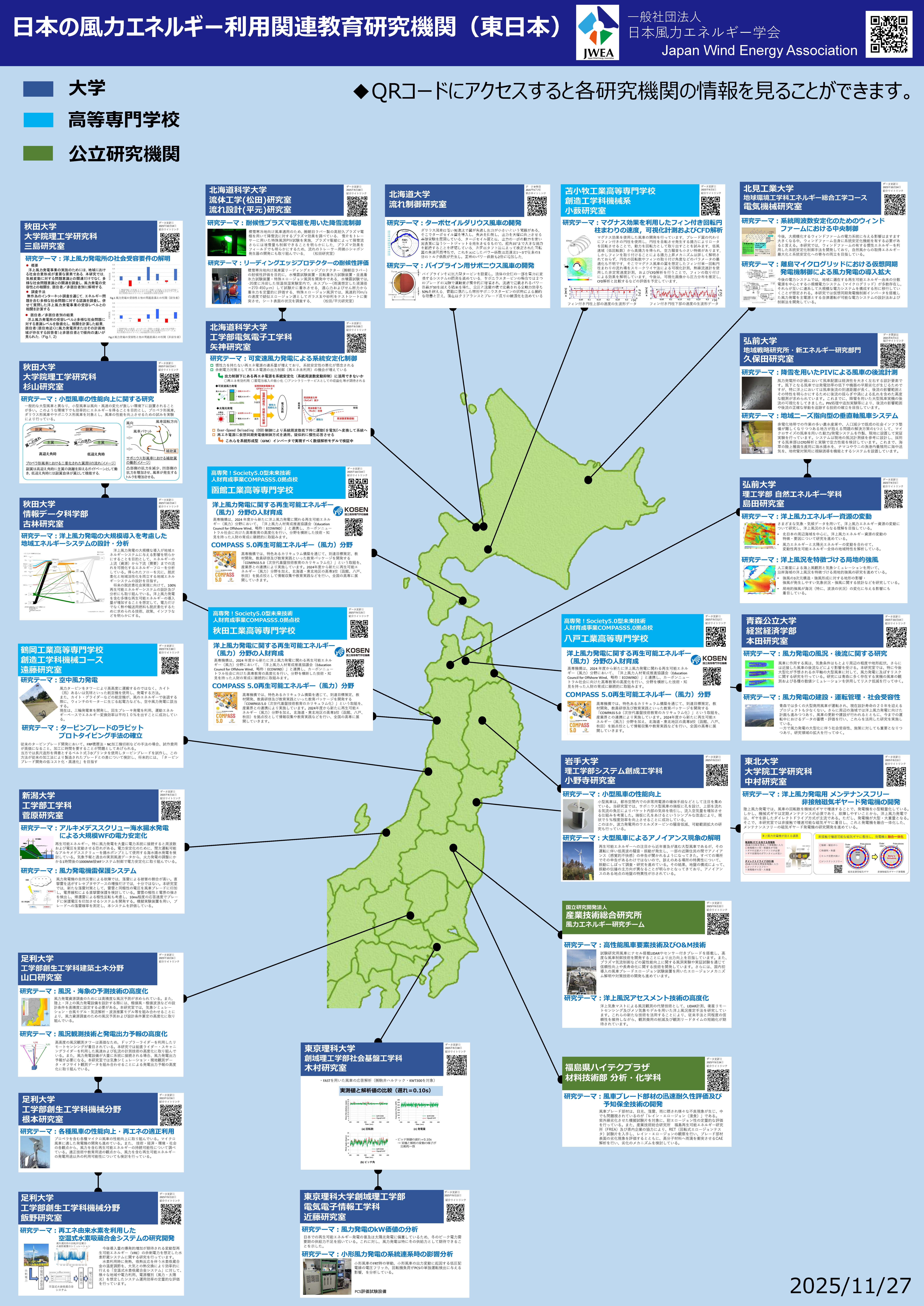 日本の風力エネルギー利用関連教育研究機関(東日本)