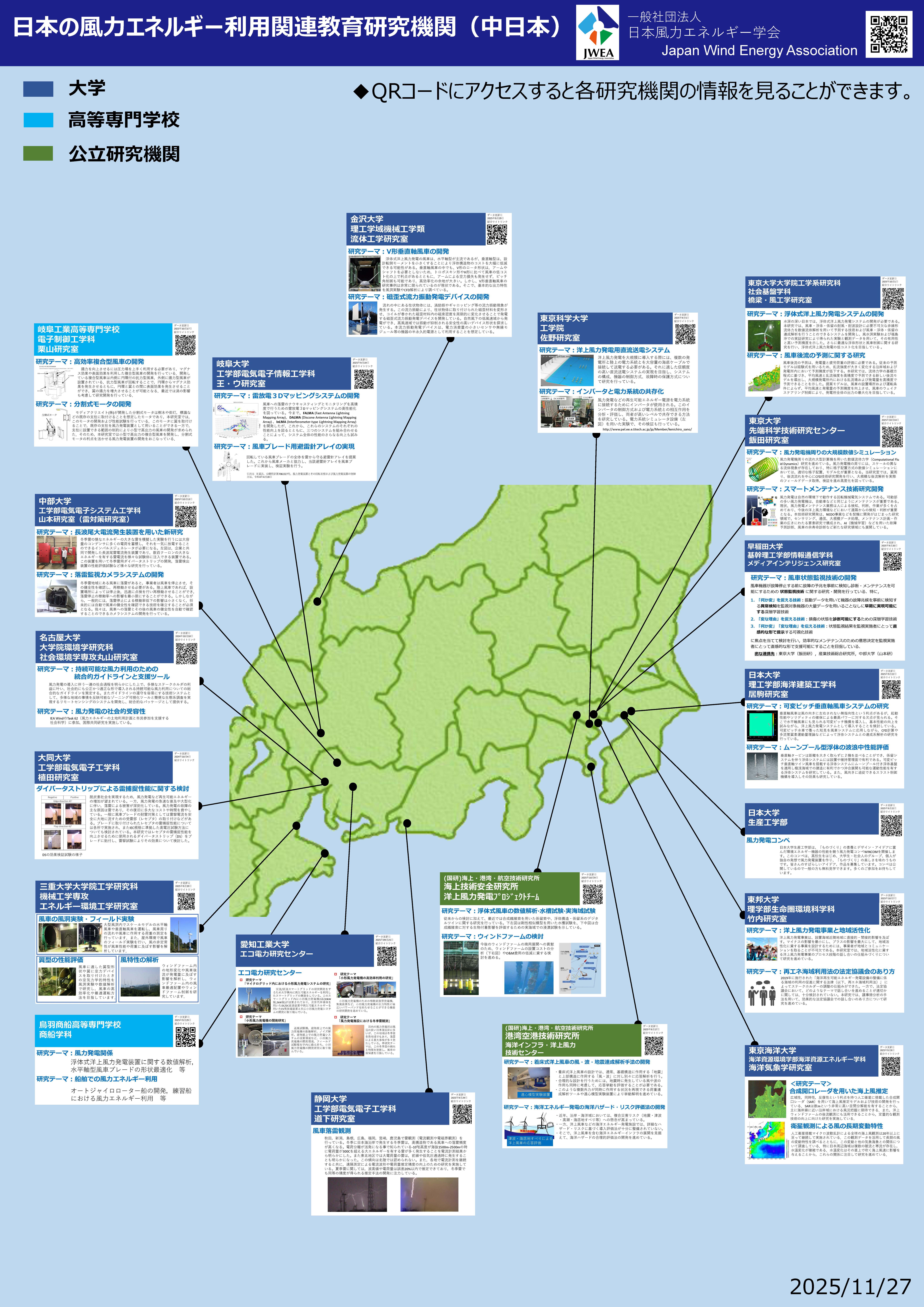 日本の風力エネルギー利用関連教育研究機関(中日本)