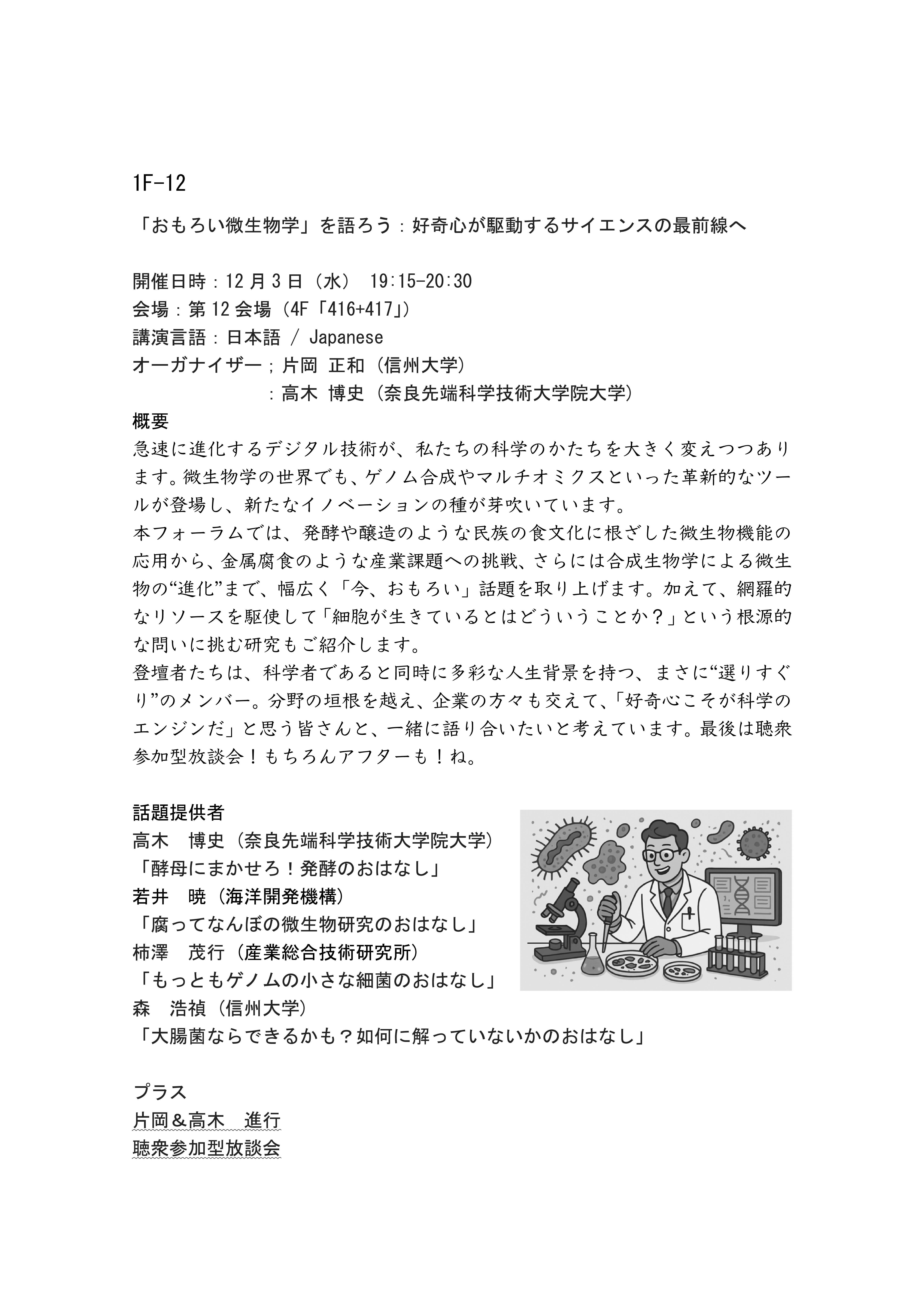 [1F-12]【J】「おもろい微生物学」を語ろう:好奇心が駆動するサイエンスの最前線へ