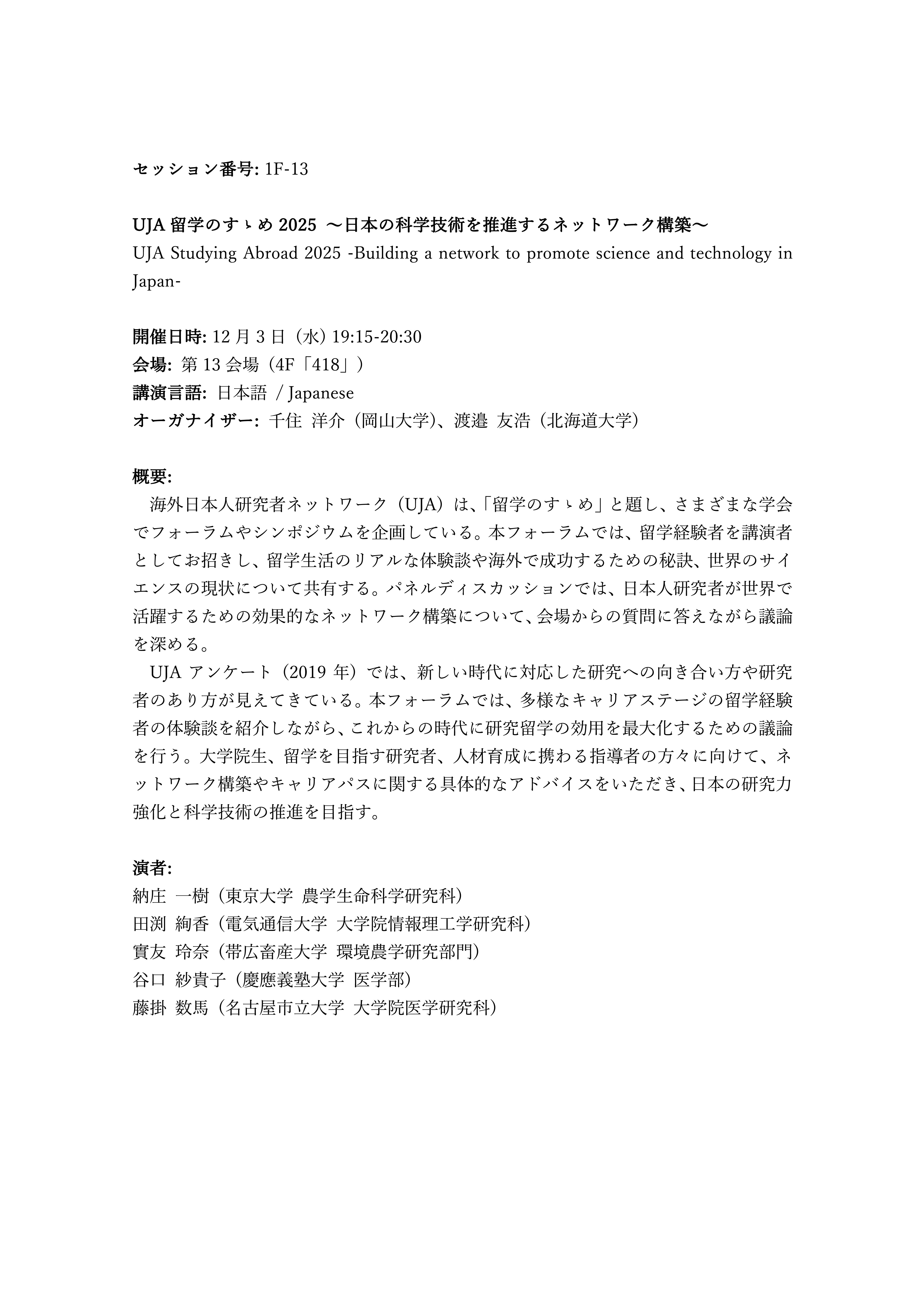 [1F-13]【J】UJA留学のすゝめ2025 ~日本の科学技術を推進するネットワーク構築~