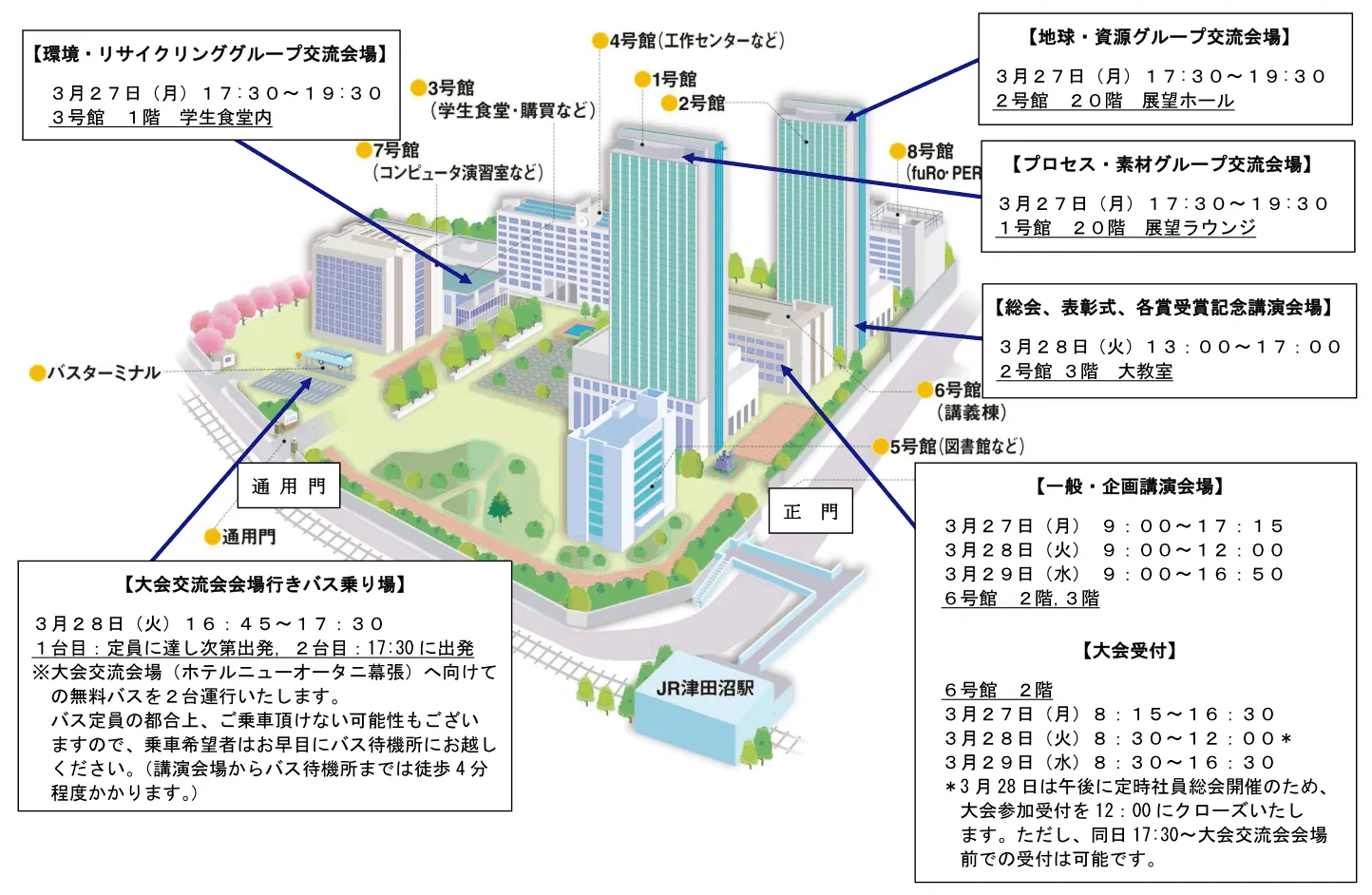 はキャンパスマップをご確認ください(講演会場からバス待機所まで