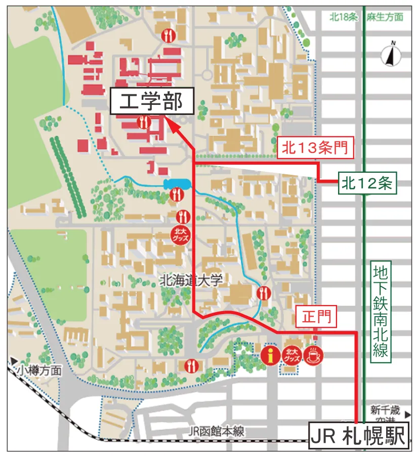 北12条駅から工学部まで徒歩約12分