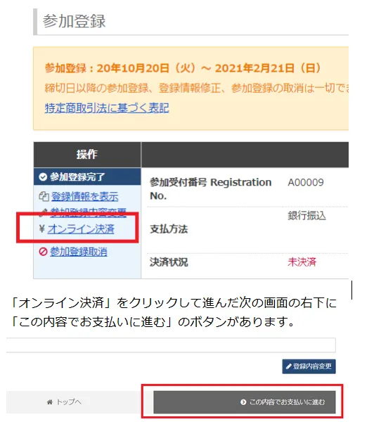 (2) 銀行振込…参加申込システムにてお申込み後、引き続き決済画面に進むと、