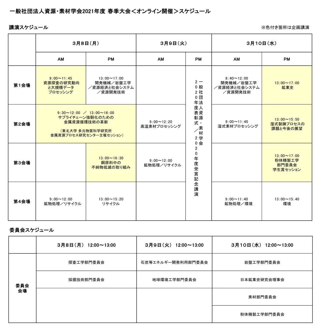 [大会名称] 一般社団法人資源・素材学会2021年度 春季大会[会 期] 大 会:2021年 3月8日(月)~10日(水)