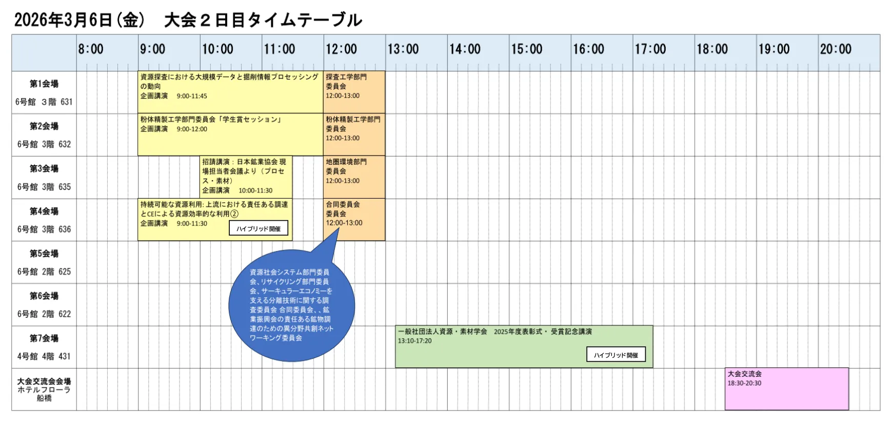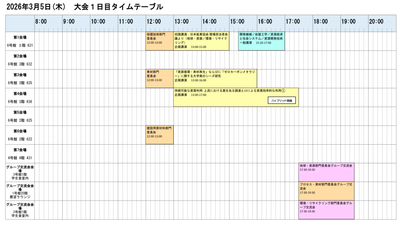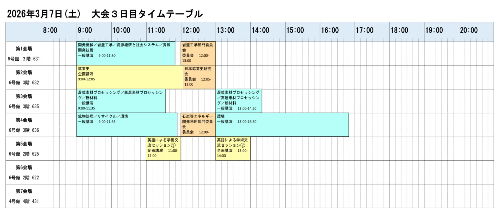 タイムテーブル(各セッション会場・時間)