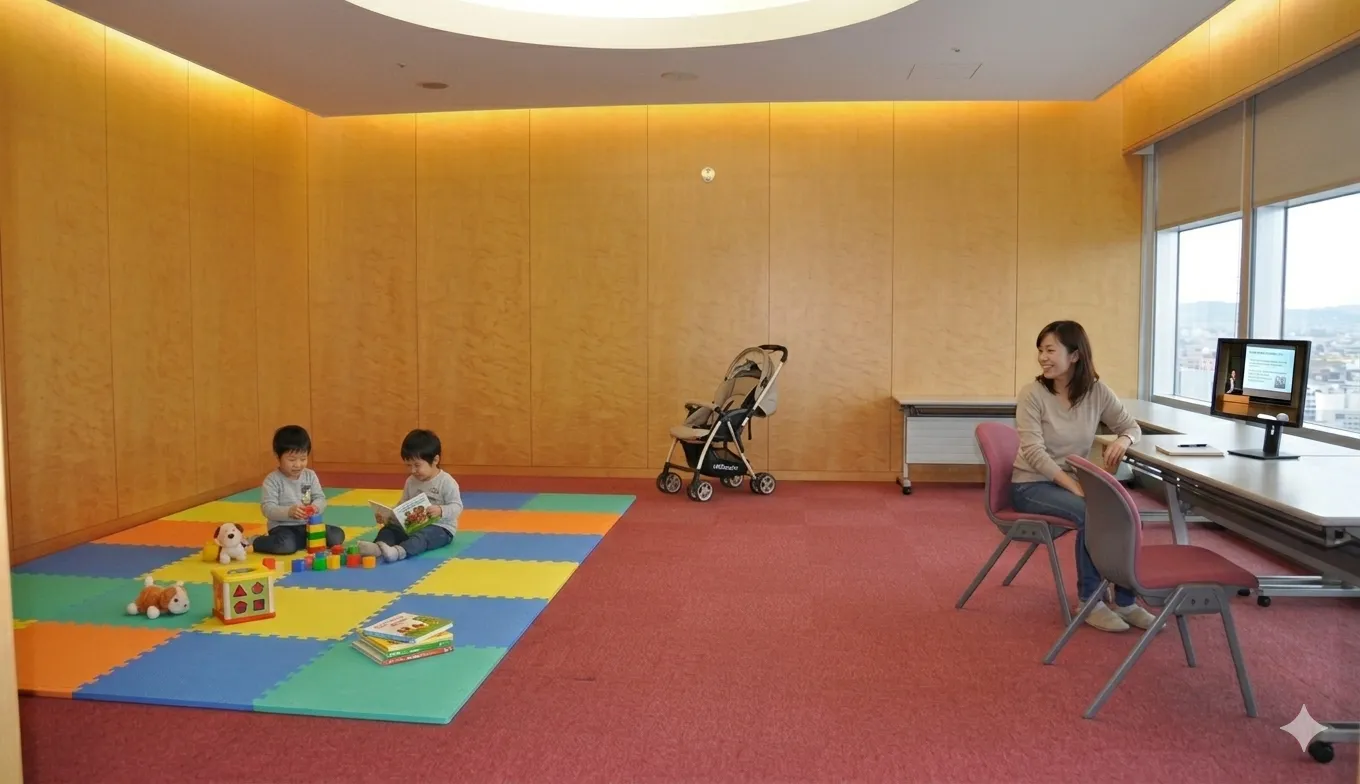 後述の予約制託児施設(リトルメイト)のほか、大会会場内(12階1201室)に自由にご利用いただけるキッズルームを設置いたします。お子様との休憩スペースとしてご活用ください。(キッズルーム近隣のトイレは男女ともにオムツ交換可能な台も設置されています。)