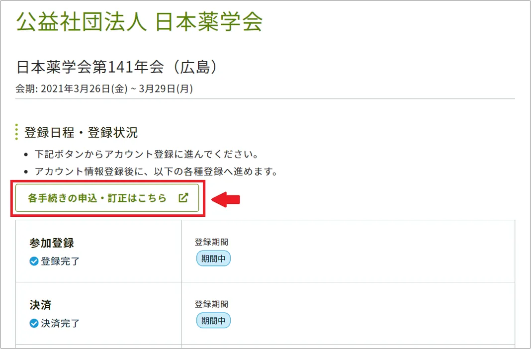 予約参加:予約参加申込を完了された方は3月5日よりご自身の予約参加申込画面にて参加証をダウンロードいただくことが可能となります.また,オンライン参加用URLを年会10日前を目処に,ご登録いただきましたメールアドレス宛に配信させていただきます.