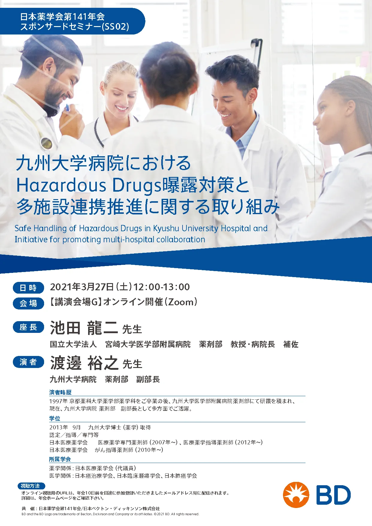 | SS02 | 九州大学病院におけるHazardous Drugs 曝露対策と多施設連携推進に関する取り組み |