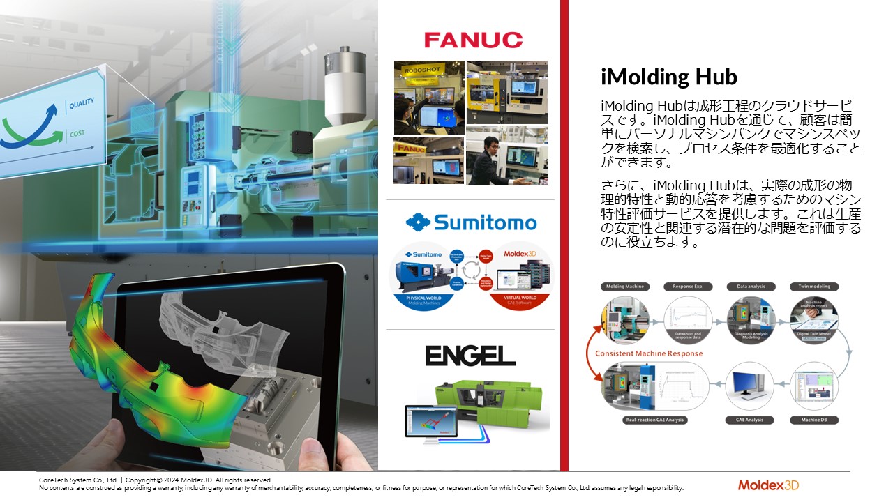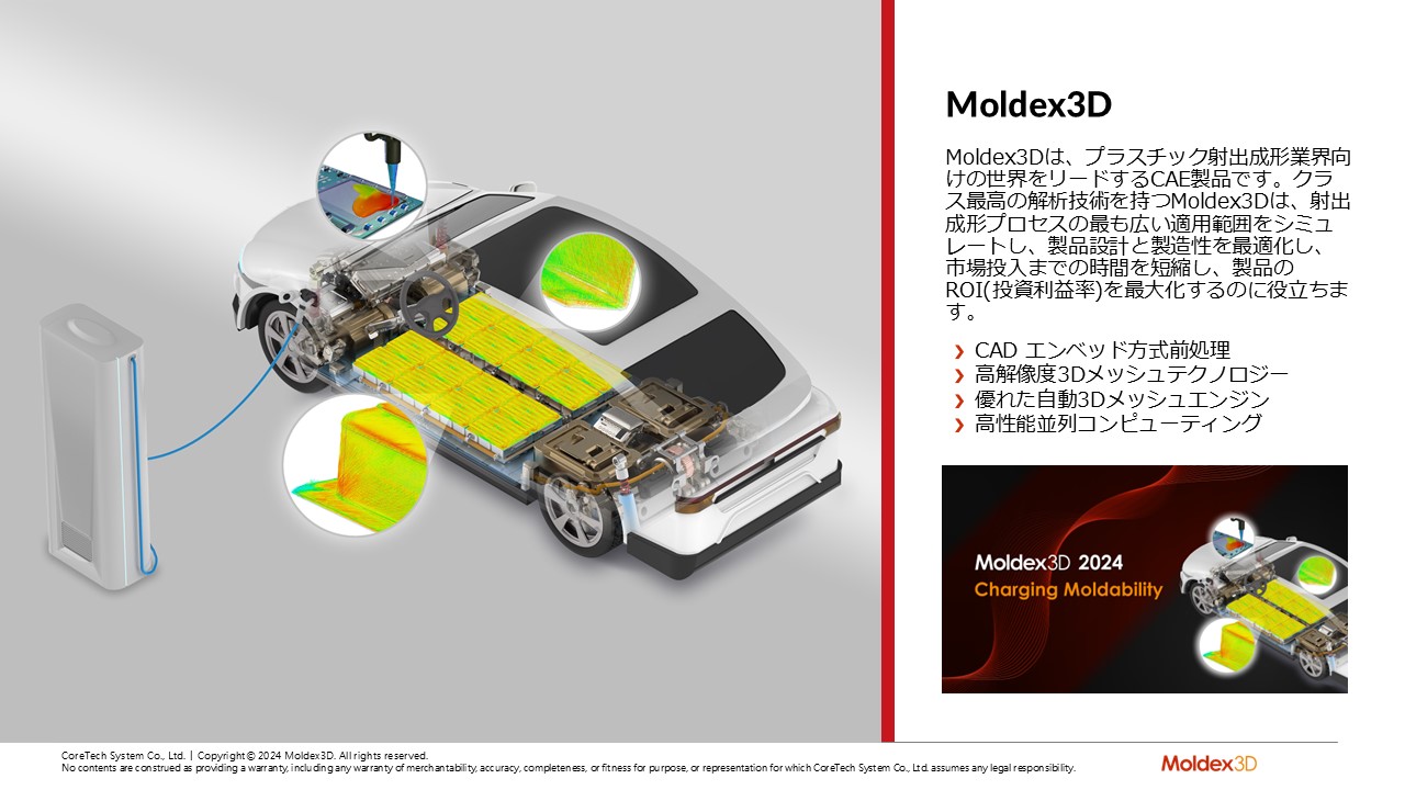 内容:Moldex3Dは、プラスチック射出成形業界向けの世界をリードするCAE製品です。射出成形プロセスにおける製品設計と生産性を最適化し、市場投入までの時間短縮を可能にします。