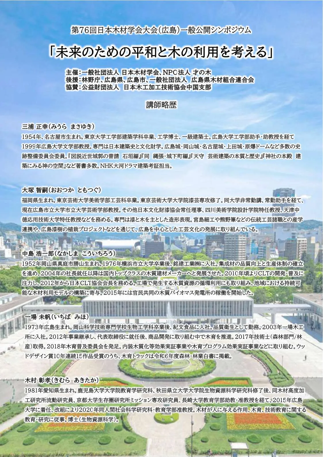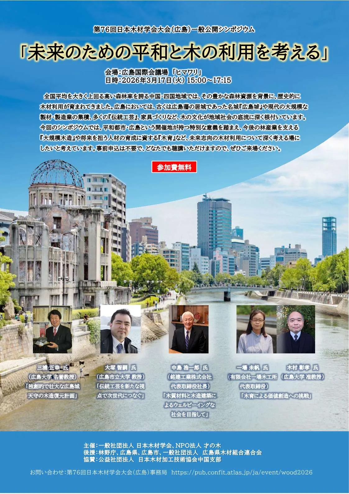 後 援:林野庁、広島県、広島市、一般社団法人 広島県木材組合連合会